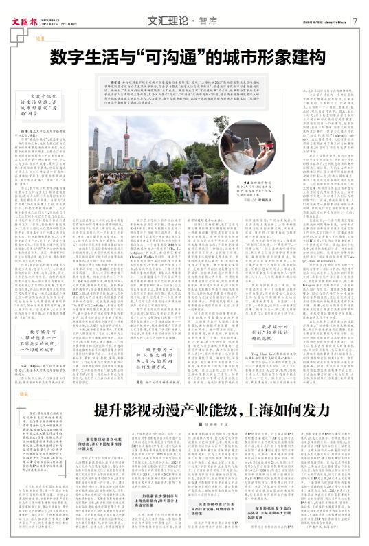 编者按 如何理解数字媒介对城市形象建构的重要作用?近日,“上海论坛2023”高端圆桌暨亚太可沟通城市研究联盟首届论坛在复旦大学举行。本次论坛由复旦大学信息与传播研究中心与ip shanghai 上海城市形象资源共享平台、文汇智库共同主办。与会学者聚焦“数字生活与城市形象”,探索数字时代城市形象传播新路径。论坛上,“亚太可沟通城市研究联盟”正式成立。联盟形成了对“可沟通城市”的共识:城市作为贯穿历史并承载当前人类文明的主导形态,其要义正在于“沟通”,“可沟通”是城市的核心价值,这召唤着传播研究者深入研究并积极推动亚太地区人与人、人与城市、城市与城市的沟通,以及全球网络城市的共建共享互联互通。本报今刊四位学者的发言摘编,以飨读者。